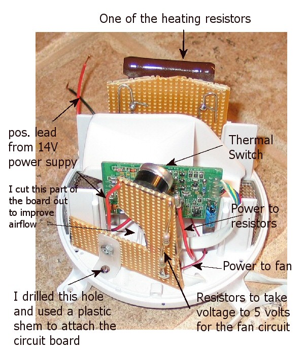4. Resistors to reduce voltage to 5 volts for the fan from Radio Shack